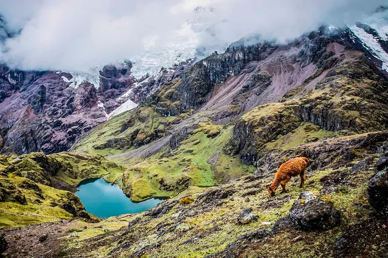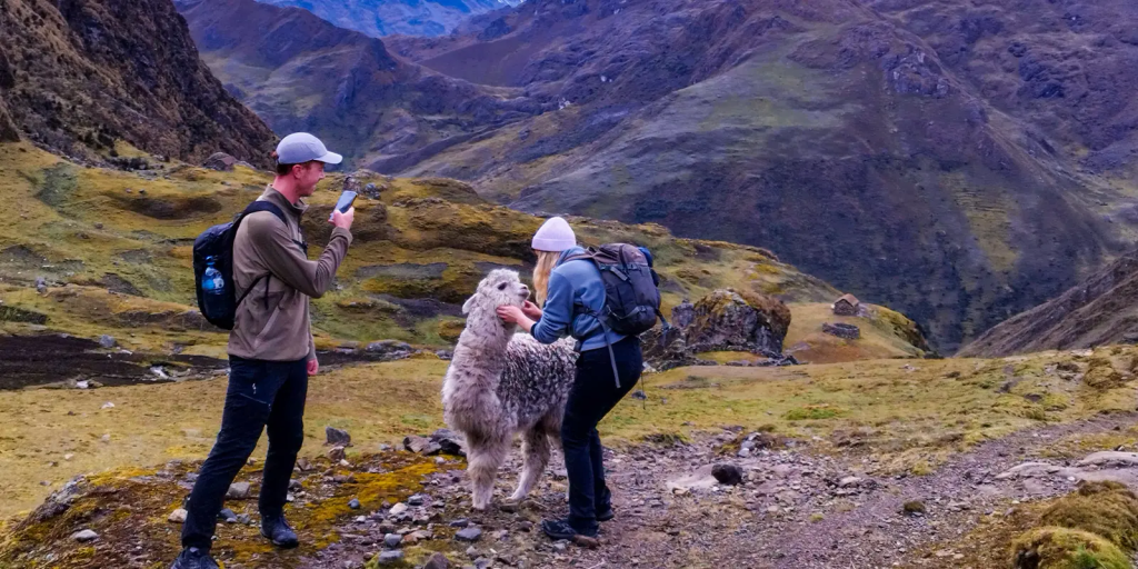 - Andean camelids: alpacas and llamas are present along the route and are used by local families.