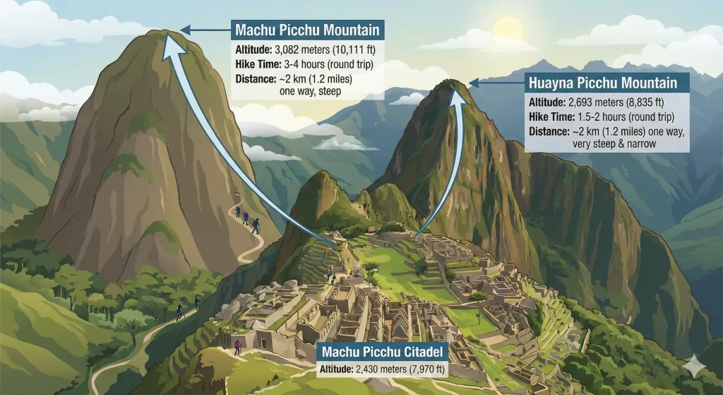 | Feature | Huayna Picchu | Machu Picchu Mountain |