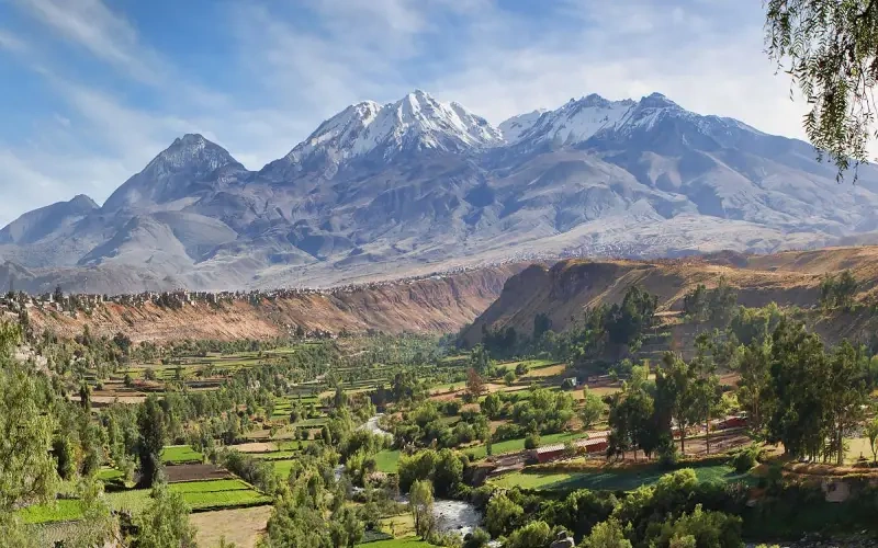 Colonial architecture carved from white volcanic stone. Quiet cloisters. Baroque façades. A city framed by the towering silhouettes of El Misti and Chachani.