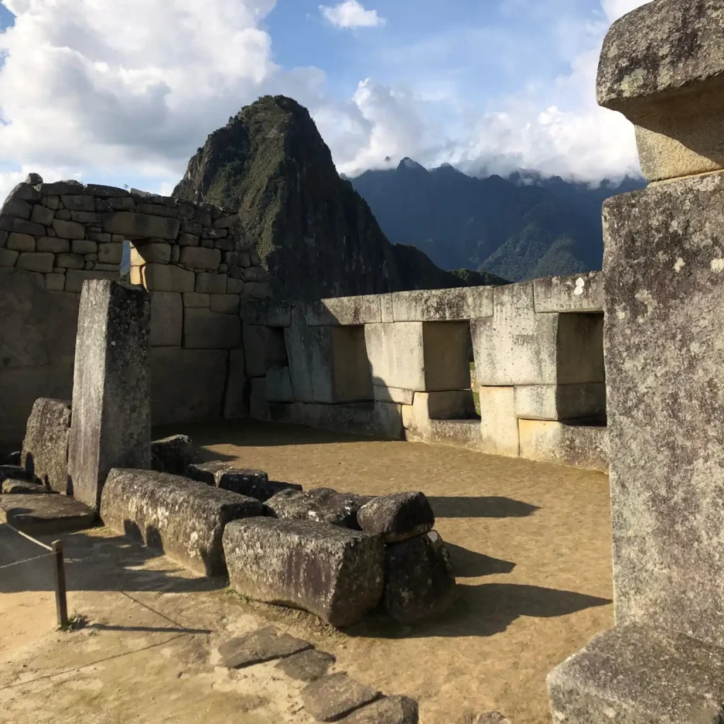 The Intihuatana is one of the most symbolic features of Machu Picchu. The guide explained that it functioned as a ritual stone associated with astronomical observation, often described as a “hitching post of the sun.” Its angles align with key solar moments, reinforcing the Inca connection between architecture, astronomy, and religion.