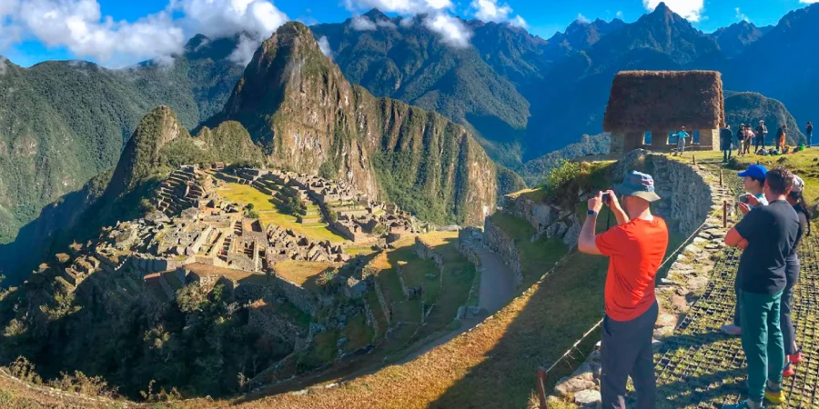 We reached the inferior platform, one of the classic viewpoints of Machu Picchu. From here, the entire urban sector spreads out below, framed by Huayna Picchu in the background.