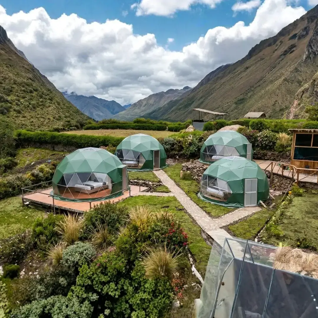 Located in an open, high Andean valley, these panoramic domes offer unobstructed views of the Salkantay and Humantay glaciers, creating an unforgettable alpine setting.